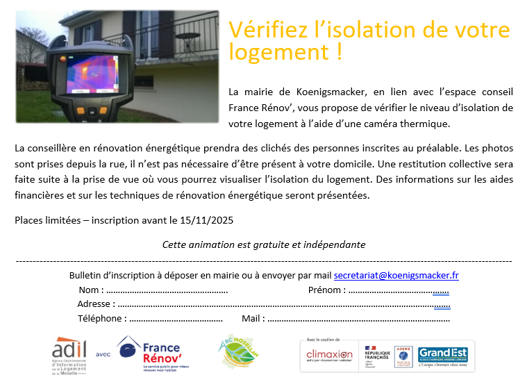Places limitées – inscription avant le 15/11/2025 en déposant le bulletin ci-dessous en mairie ou par mail secretariat@koenigsmacker.fr